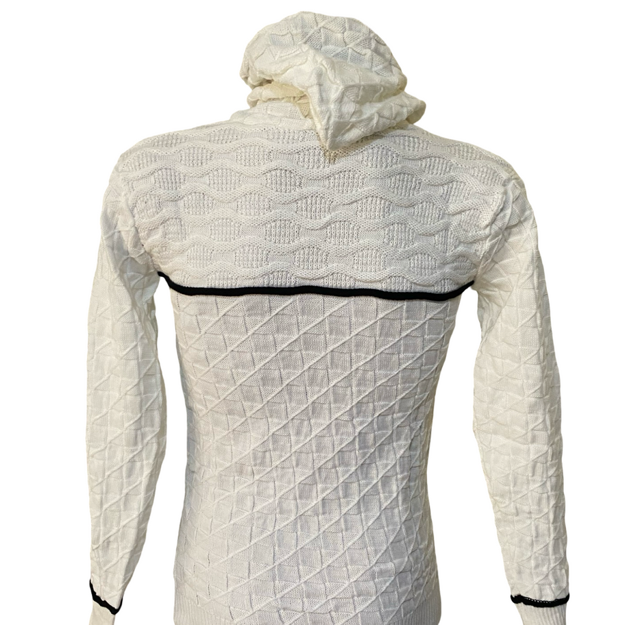 Add a refined edge to your winter wardrobe with this Men’s Diamond Knit Pullover, designed for both warmth and modern appeal. Made from a premium 70% acrylic and 30% wool blend, it delivers exceptional softness, comfort, and durability. The intricate diamond and wave knit pattern creates a sophisticated texture, while the contrasting black collar and trims add a bold, stylish touch.